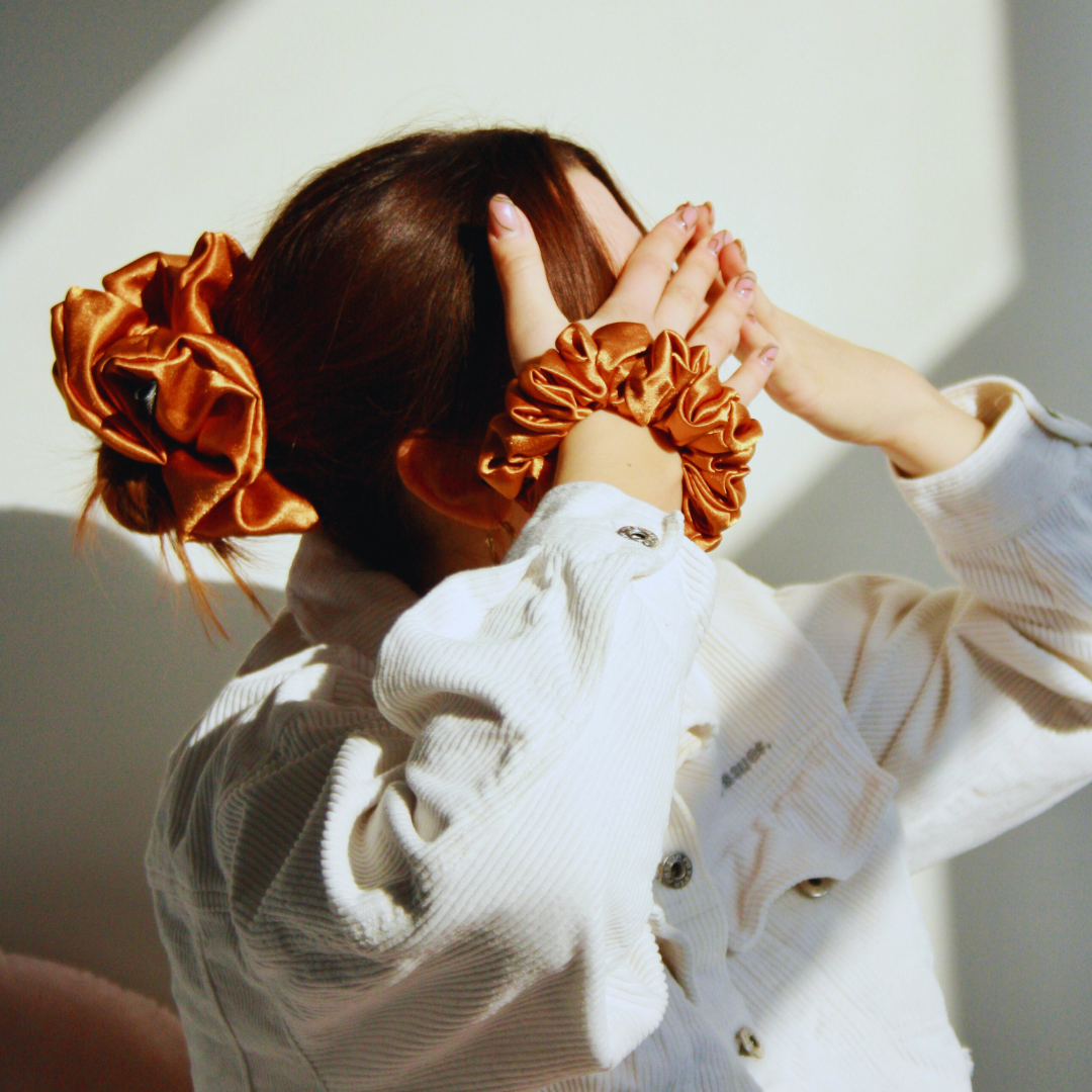 MINI dydis puikiai tinka, kai nori lengvesnio akcento, bet kartu ir pilnos scrunchie formos. Tai idealus pasirinkimas tiek kasdienai, tiek ypatingoms progoms. Be to, MINI scrunchie gali būti dėvima ir ant riešo – kaip stilinga detalė, papildanti tavo įvaizdį.