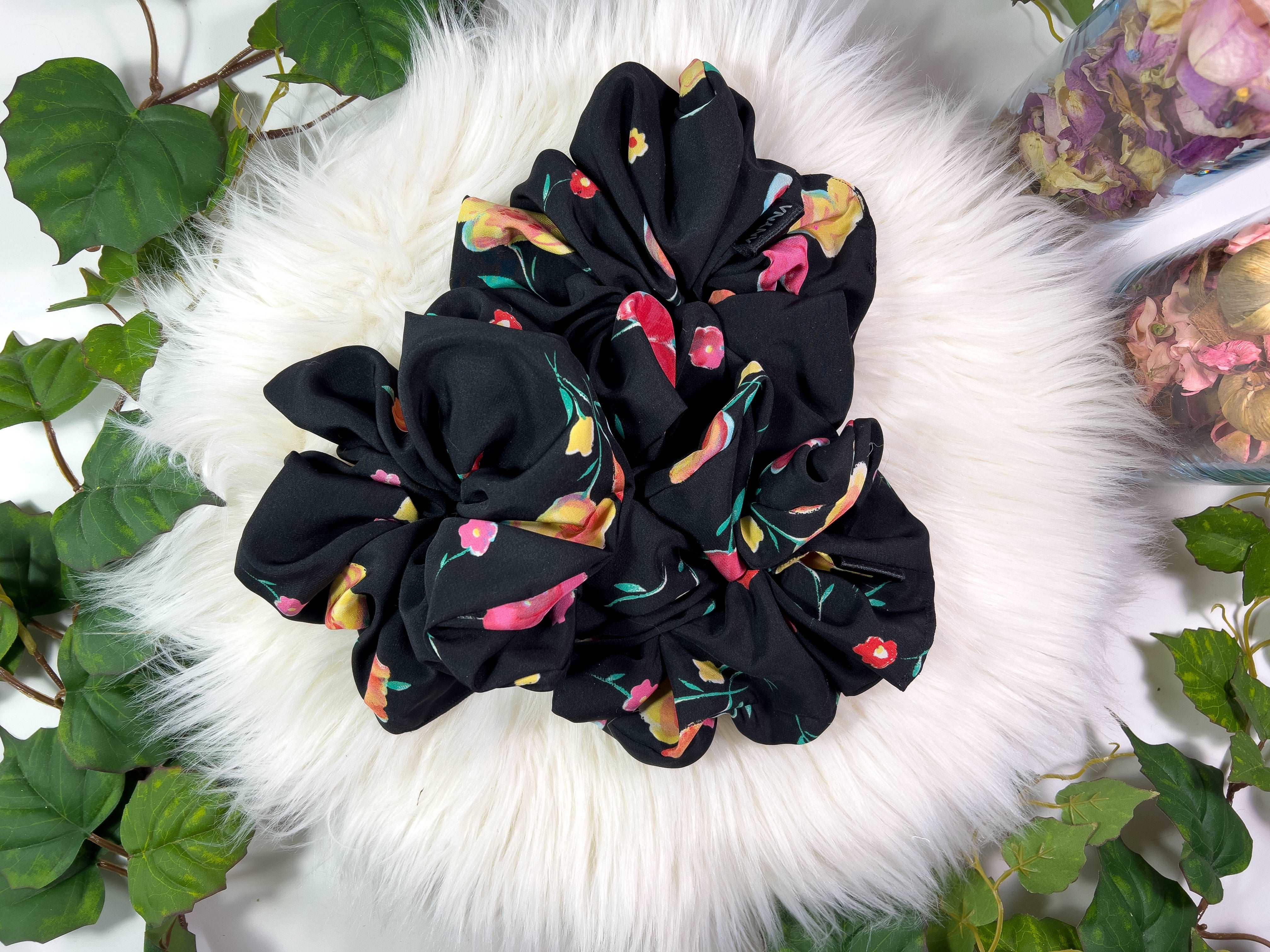 With a diameter of 15 cm, they're the perfect size to wrap around your ponytail or wear as a fashionable wrist accessory. And, when they need a refresh, our scrunchies are washable and easy to care for, check out our scrunchies care instructions.