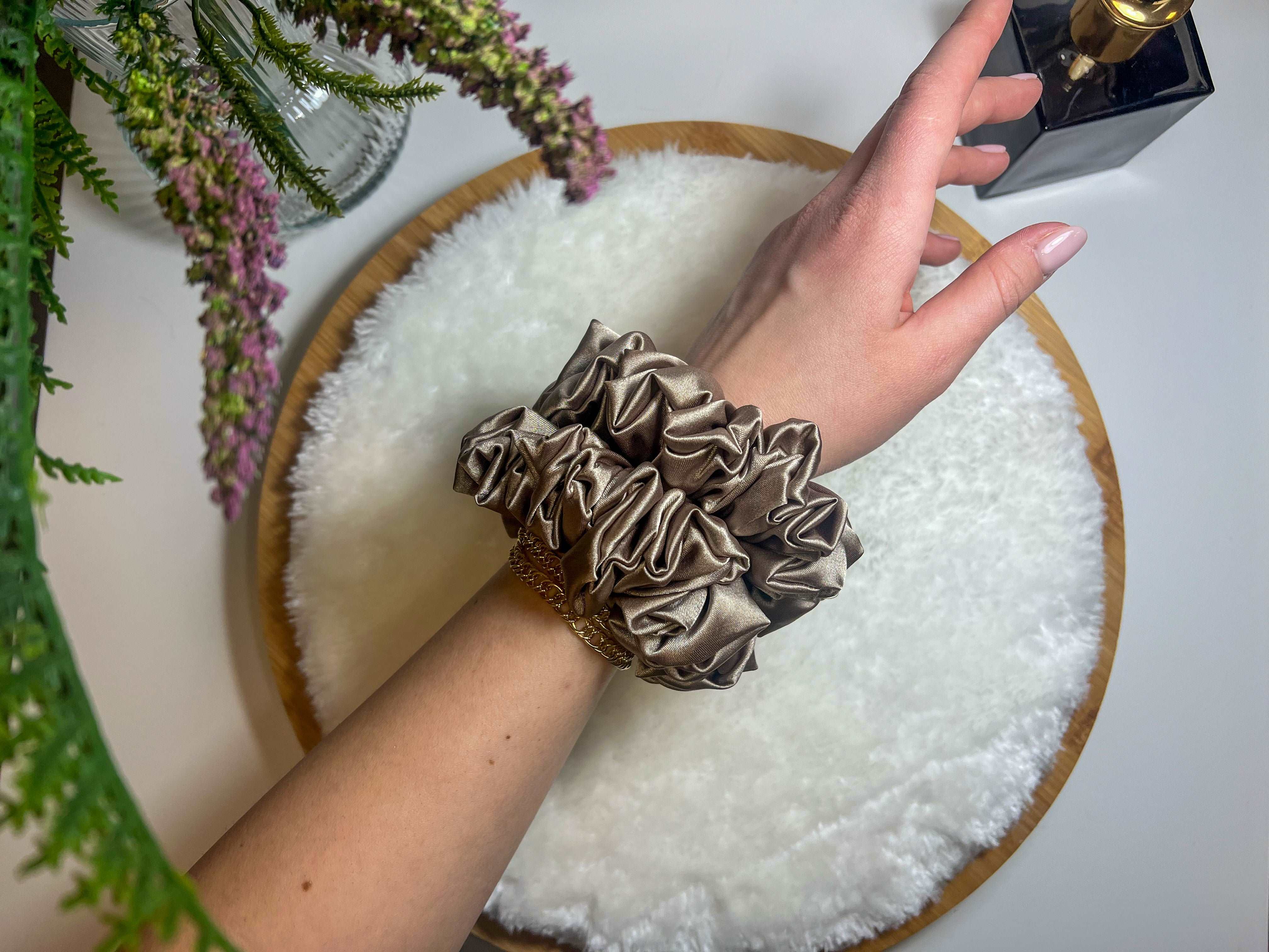 MINI dydis puikiai tinka, kai nori lengvesnio akcento, bet kartu ir pilnos scrunchie formos. Tai idealus pasirinkimas tiek kasdienai, tiek ypatingoms progoms. Be to, MINI scrunchie gali būti dėvima ir ant riešo – kaip stilinga detalė, papildanti tavo įvaizdį.