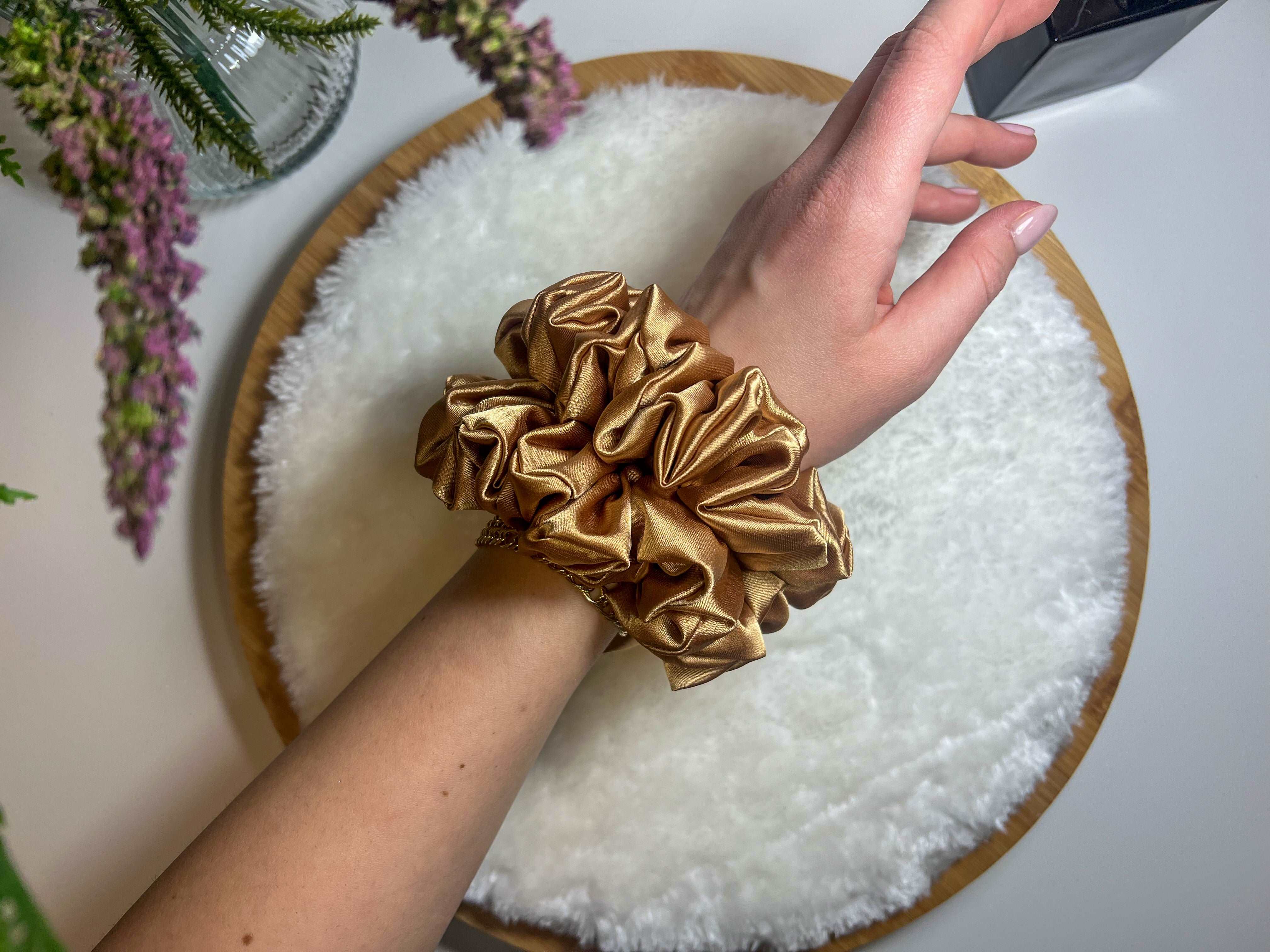 MINI dydis puikiai tinka, kai nori lengvesnio akcento, bet kartu ir pilnos scrunchie formos. Tai idealus pasirinkimas tiek kasdienai, tiek ypatingoms progoms. Be to, MINI scrunchie gali būti dėvima ir ant riešo – kaip stilinga detalė, papildanti tavo įvaizdį.